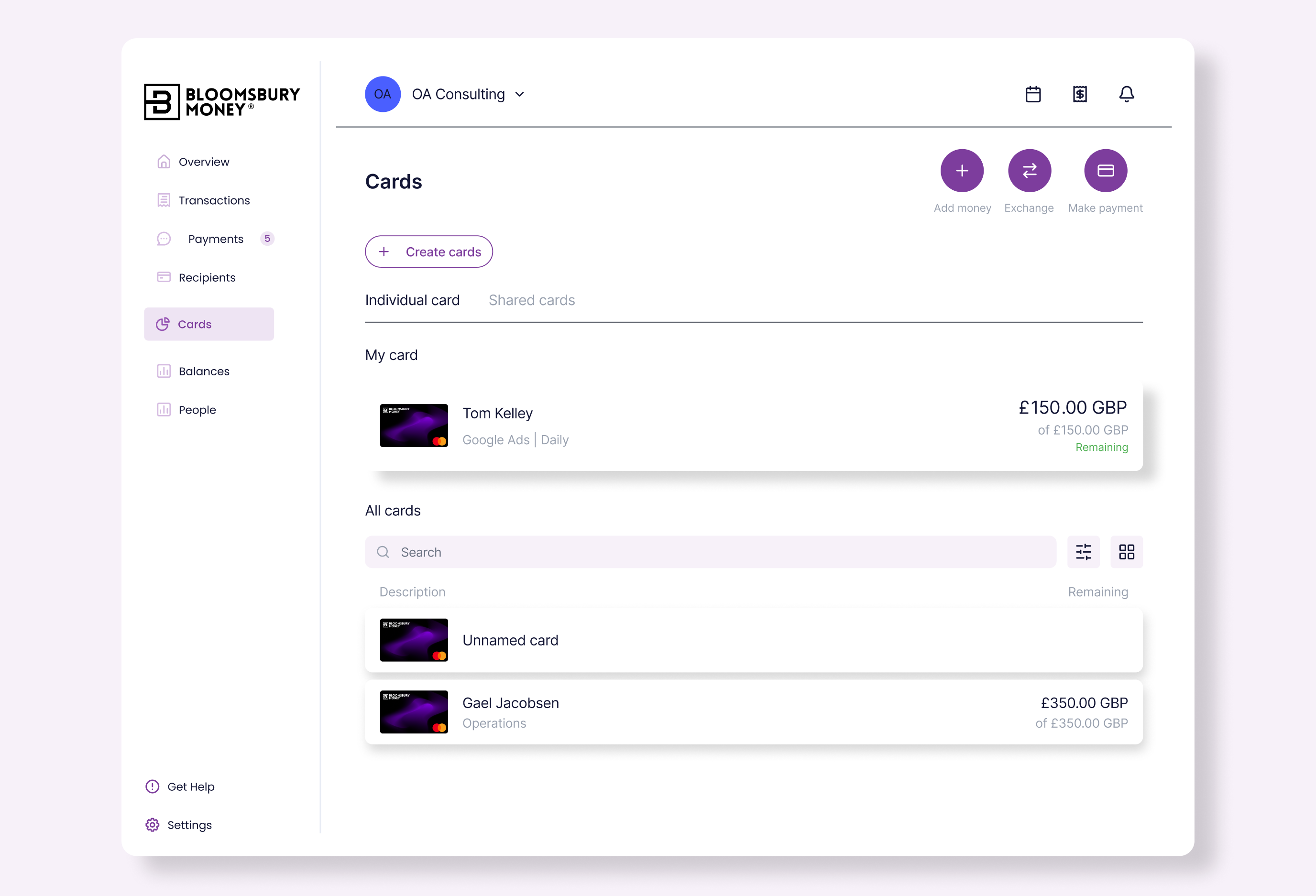 Monitor every corporate card payment from one hub, making it simple to track, control, and report on employee spending across the organisation.